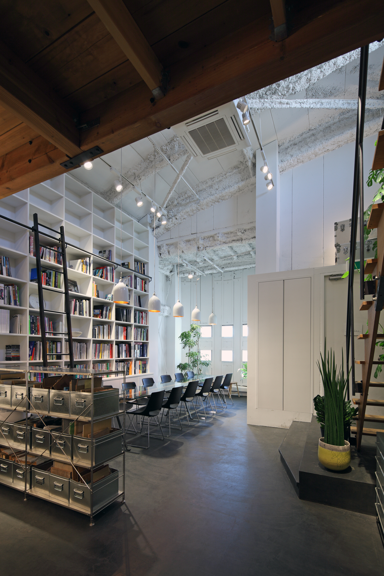 To make the most of 5.6m (maximum)-high ceiling, we created a functional and comfortable office space.We also tried to express our company philosophy in this office design; simple but appealing.